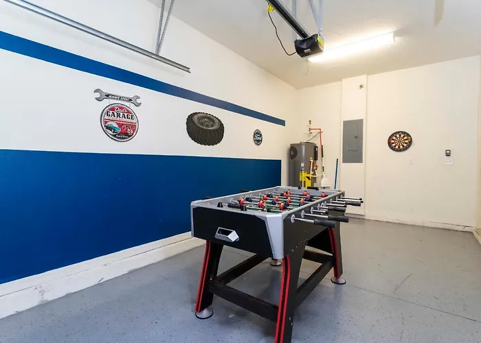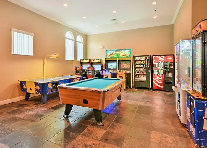 Vila de 269 m² inclui pátio, cofre pessoal e Internet de banda larga nos quartos. Esta pousada também tem cozinha e 6 banheiros. Luxe Terra Verde Villa With Theater 6 Mi To Disney! tem 6 camas. Banheira de spa, banheira de hidromassagem e banheiro separado são toques agradáveis para melhorar a sua estadia.